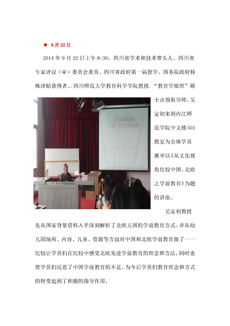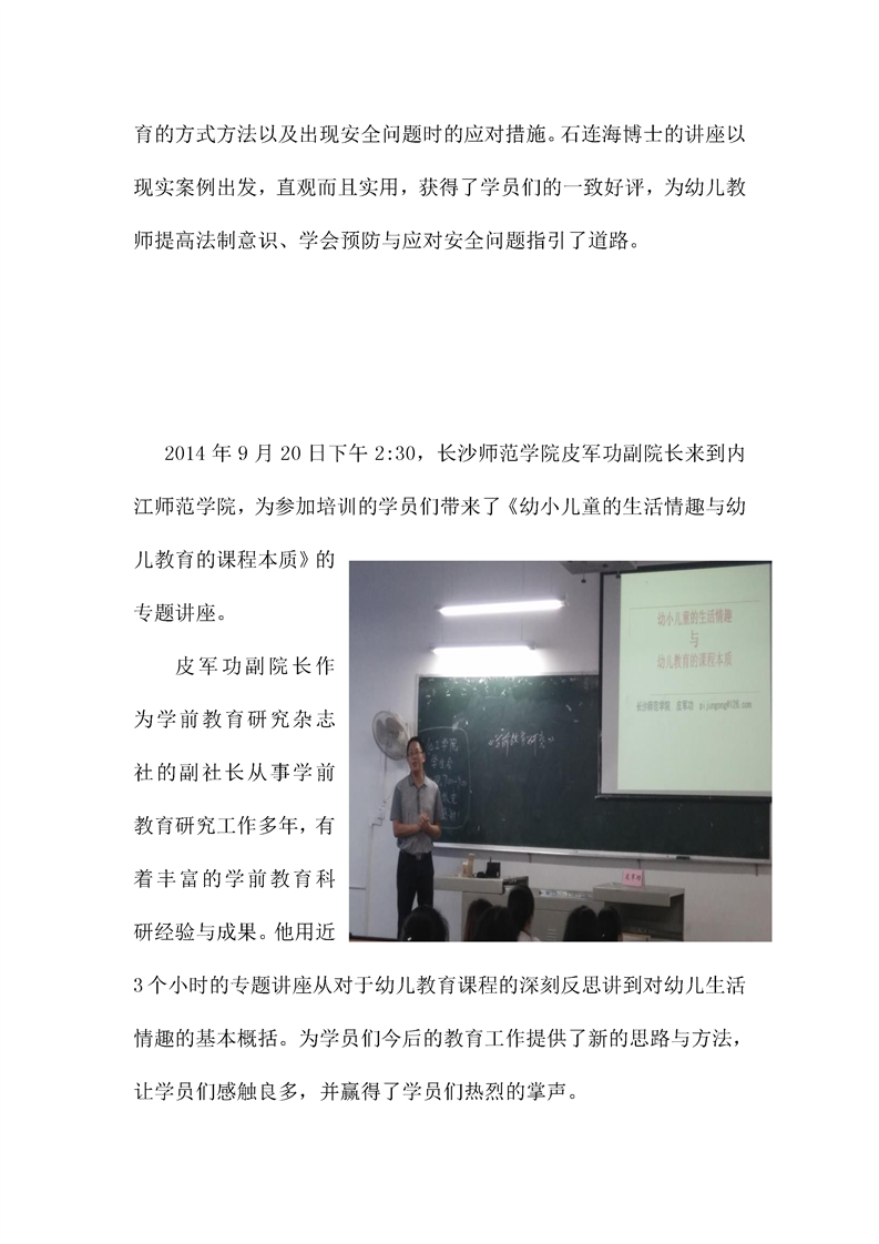 “幼师国培”(2014)—四川省农村幼儿园骨干教师短期集中研修项目培训简报第2期